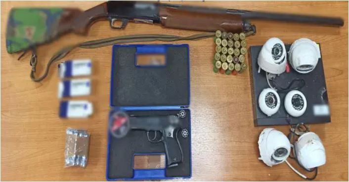 Ο κατηγορούμενος κατελήφθη μέσα στο σπίτι του, να κατέχει ναρκωτικά δισκία φαρμακευτικού σκευάσματος, καθώς και όπλα και πυρομαχικά, ενώ διαπιστώθηκε ότι είχε εγκαταστήσει έξω από το σπίτι του 6 κάμερες κλειστού κυκλώματος.