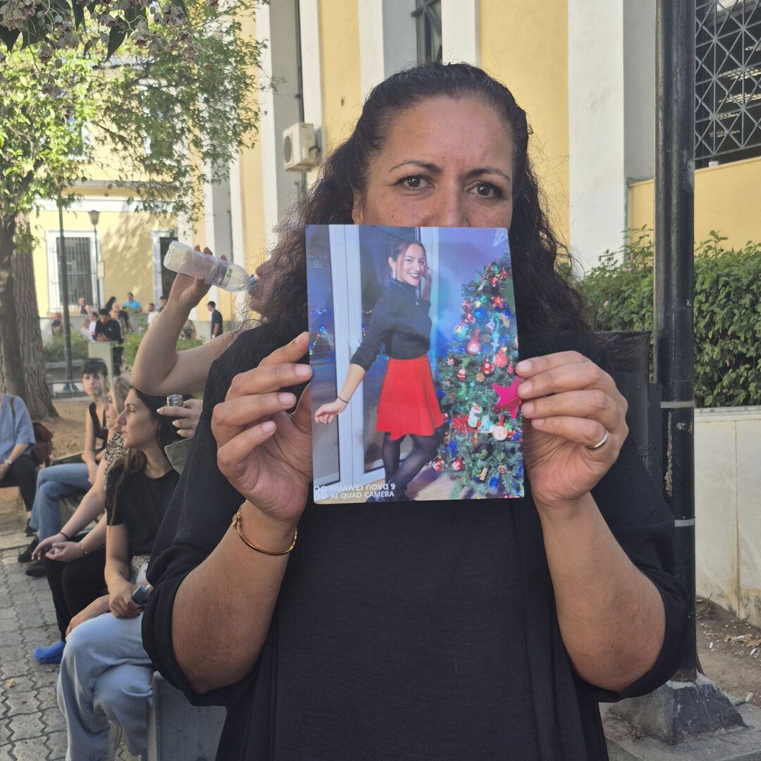 «Πόσο πολύ αγαπάει ο κόσμος το παιδί μου και ο μόνος που δεν την αγάπησε είναι αυτός μέσα», αναφωνούσε η μητέρα της Γρίβα, Δέσποινα Καλλέα, στο άκουσμα των συνθημάτων, κρατώντας στα χέρια της φωτογραφίες της κόρης της.
