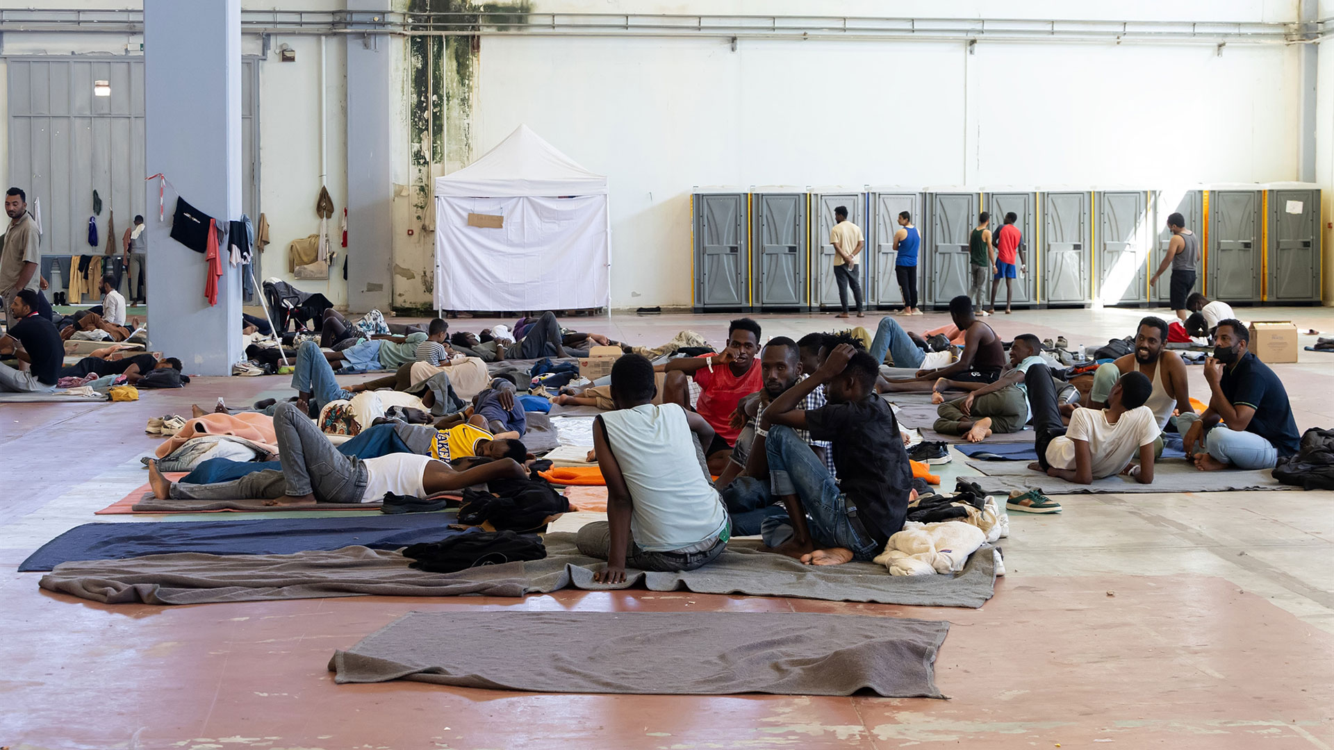 Η κατάσταση στην πρόχειρη δομή, όπου δεν πληρούνται οι προδιαγραφές για παραμονή πολλών ημερών, είναι δύσκολη και ήδη πολλοί άνθρωποι έχουν εμφανίσει ασθένειες που χρήζουν άμεσης θεραπείας. Παράλληλα, επί δύο ημέρες απείχαν από το φαγητό προκειμένου να εκφράσουν τη δυσαρέσκειά τους για τις συνθήκες κράτησης επί τόσες ημέρες. Αξίζει να σημειωθεί ότι σύμφωνα με τη νομοθεσία είναι κρατούμενοι, ωστόσο οι δυνατότητες φύλαξης είναι περιορισμένες εφόσον στον χώρο υπάρχει δύναμη της Αστυνομίας και του Λιμενικού, που όμως είναι συνολικά δέκα άτομα.