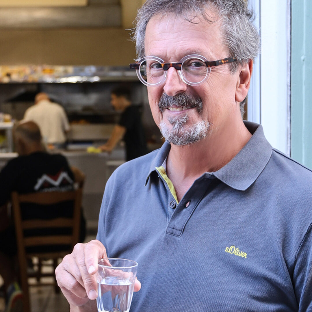 Μεσημεράκι εργάσιμης σε έναν μικρό πεζόδρομο του Βόλου. Ο σερβιτόρος, στο παραδοσιακό στέκι του «ΚΑΒΟΥΡΑ», είχε στην αγκαλιά του δύο μπουκάλες τσίπουρο. Τις κρατούσε προστατευτικά, σαν μωρά. Θυμόταν ποιοι έπιναν με γλυκάνισο και ποιοι χωρίς. Πηγαινοερχόταν ανάμεσα στα τραπέζια και σέρβιρε νέους γύρους μαζί με θυμοσοφικές ατάκες για την πολιτική ζωή και τη Βουλή.