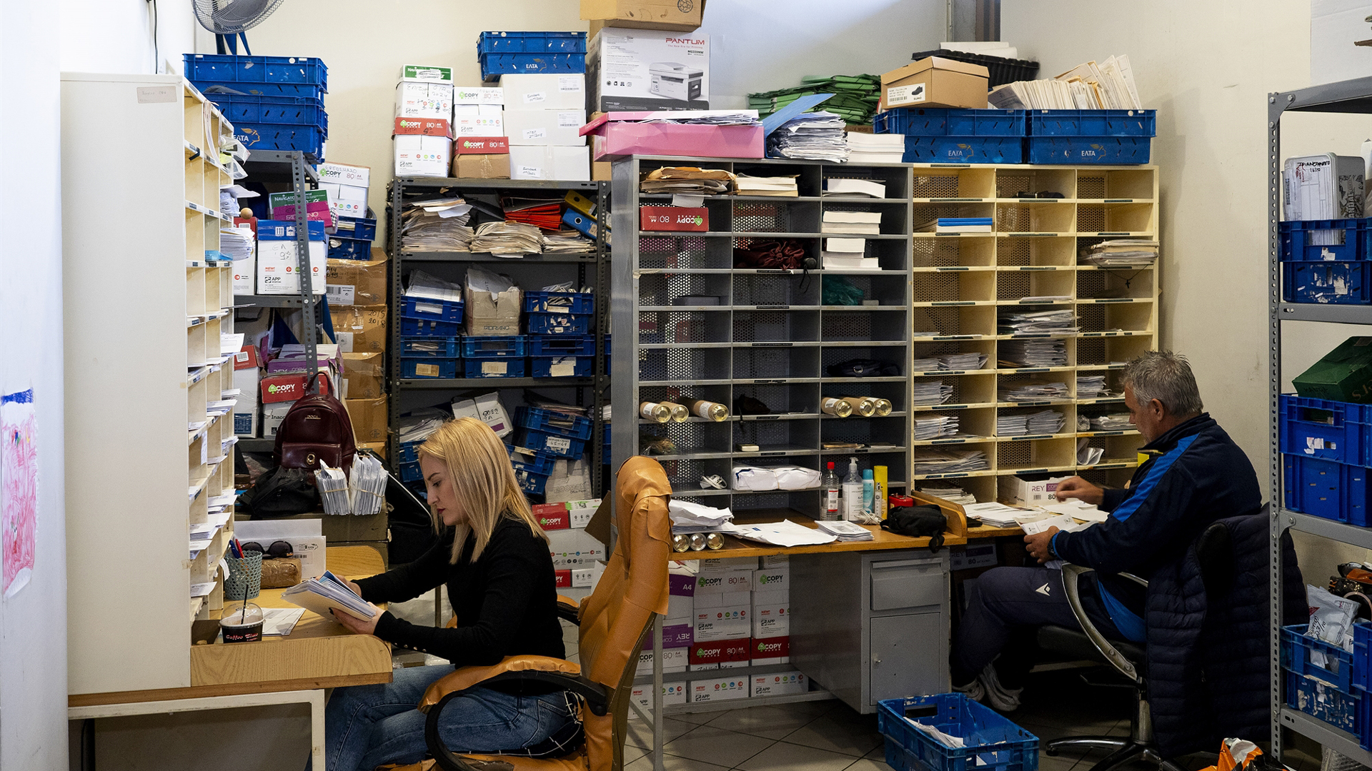 Προσκόλληση σε συνήθεια του παρελθόντος ή πραγματική ανάγκη; Κάποιοι κάτοικοι της Νέας Αρτάκης δεν φοβούνται να παραδεχτούν πως είναι το πρώτο. Ειδικά για μεγαλύτερους σε ηλικία, που δεν τους είναι εύκολο να αλλάξουν τρόπους. Για τον Βαγγέλη Ζερβά, ταχυδρόμο για πάνω από δύο δεκαετίες και συνδικαλιστή, είναι σίγουρα το δεύτερο. Θέλοντας να δείξει τις ιδιαιτερότητες μιας επαρχιακής πόλης, με οδηγεί στον χώρο όπου ταξινομεί τα γράμματα και τα δέματα. Εκεί έχει μια στοίβα με πυκνογραμμένες κόλλες Α4.