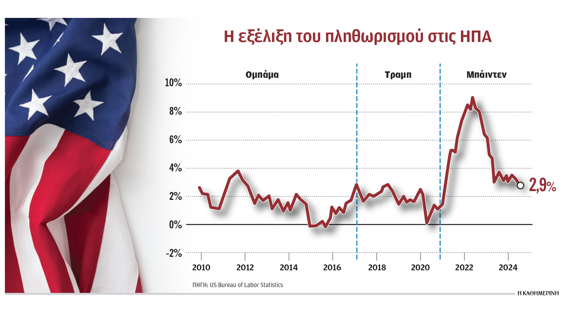 Ο πληθωρισμός έπεσε κάτω από το 3%, παραμένοντας ωστόσο υψηλότερος από τα ποσοστά που καταγράφηκαν στην πρώτη θητεία Τραμπ.