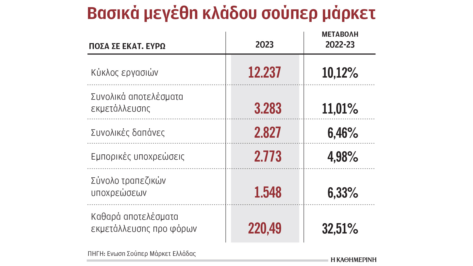 Τέλος, αν και ο κ. Παντελιάδης εκτίμησε ότι στην παρούσα φάση δεν υπάρχουν «κρυμμένες βόμβες όπως αυτή του Μαρινόπουλου ή του Βερόπουλου», όπως χαρακτηριστικά δήλωσε, η συμπίεση των περιθωρίων κέρδους θα ωθήσει τον κλάδο σε περαιτέρω συγκέντρωση. Σημειώνεται ότι το καθαρό περιθώριο προ φόρων στον κλάδο διαμορφώθηκε το 2023 σε 1,80% έναντι 1,47% το 2022.