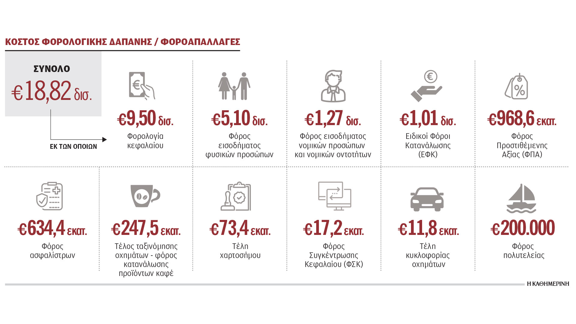 6. Φόρος ασφαλίστρων (5 απαλλαγές). Οι μειώσεις έφθασαν τα 634 εκατ.