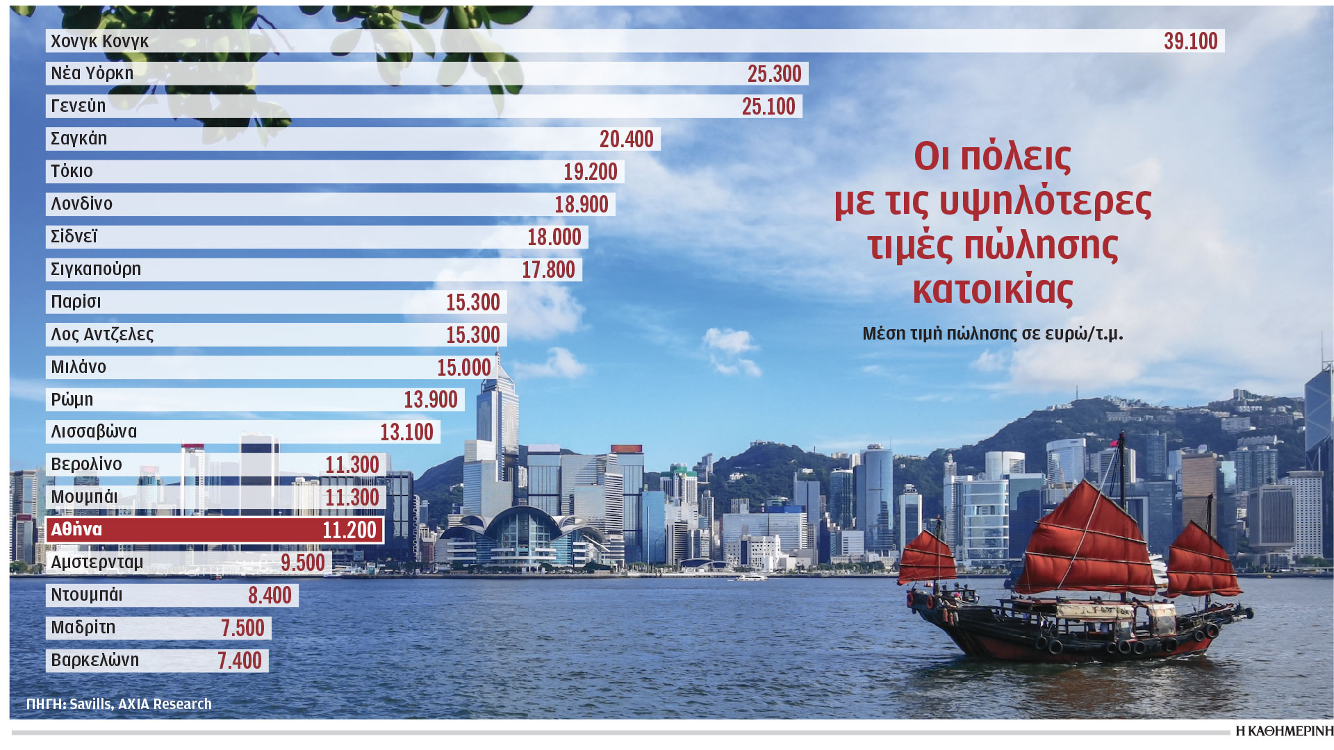 Τα στοιχεία προκύπτουν με βάση έρευνα της Savills και της Axia Research και καταδεικνύουν την ανάδειξη της Ριβιέρας μεταξύ των προορισμών με τη μεγαλύτερη ζήτηση. Η ακριβότερη περιοχή παγκοσμίως παραμένει το Χονγκ Κονγκ με το δυσθεώρητο κόστος των 39.100 ευρώ/τ.μ. Για να έχει κανείς μέτρο σύγκρισης, υπολογίζεται ότι περίπου 3 τ.μ. στο Χονγκ Κονγκ κοστίζουν όσο ένα παλιό διαμέρισμα 100 τ.μ. στο κέντρο της Αθήνας. Ακολουθεί στη δεύτερη θέση της λίστας με τις ακριβότερες πόλεις η Νέα Υόρκη με 25.300 ευρώ/τ.μ.