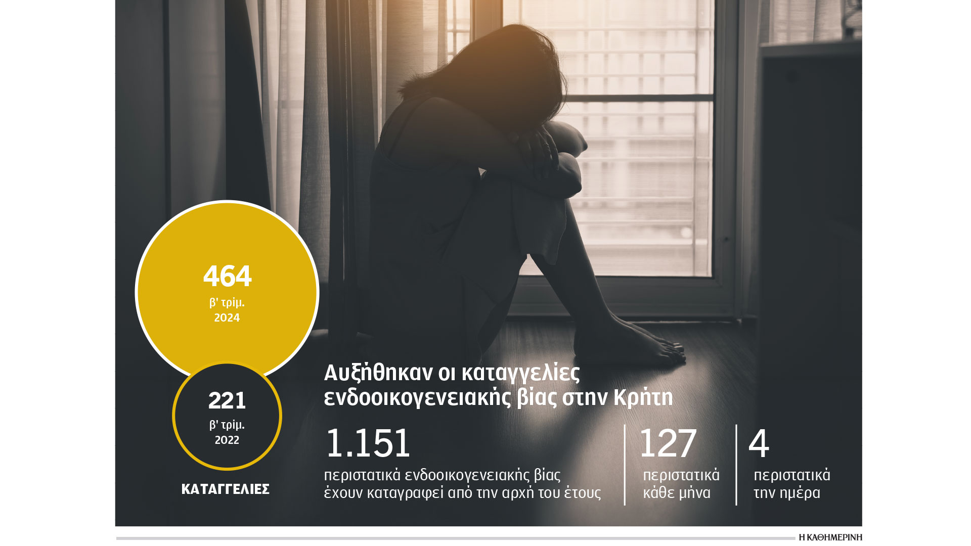 Oλο και περισσότερες γυναίκες καταφέρνουν να ξεπεράσουν τον φόβο τους και να καταγγείλουν τους κακοποιητές τους, όπως δείχνει η αύξηση των καταγγελιών περιστατικών ενδοοικογενειακής βίας που καταγράφει η 2η έκθεση του Παρατηρητηρίου για τη βία κατά των γυναικών στην Κρήτη. Το πρόβλημα είναι πολύ μεγάλο καθώς από την αρχή του έτους έως το τέλος Σεπτεμβρίου είχαν καταγγελθεί 1.151 περιστατικά ενδοοικογενειακής βίας στην Κρήτη, δηλαδή 4 περιστατικά την ημέρα.