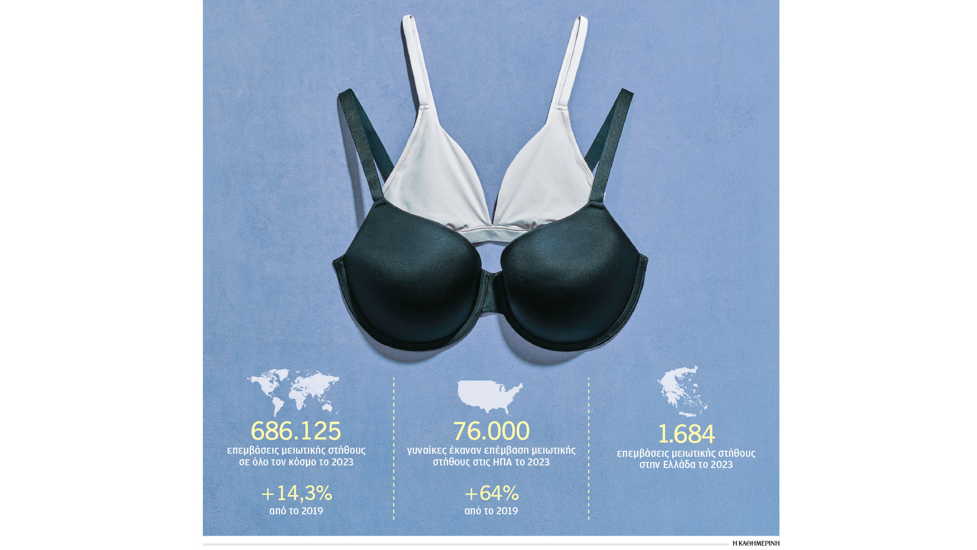 Το Love Actually παίζεται σε λούπα αυτές τις ημέρες κάνοντάς μας να ξαναερωτευόμαστε, αν και για πολλά κορίτσια εκεί έξω «all they want for Christmas» είναι το στήθος της Κίρα Νάιτλι. Δεν είναι υπερβολή. Οπως έχουν καταγράψει οι New York Times (The Power of a Smaller Breast – Η δύναμη ενός μικρότερου στήθους, 20.09.2024), μπορεί η αυξητική στήθους να παραμένει η πιο δημοφιλής επέμβαση αισθητικής χειρουργικής στη χώρα, μετά τη λιποαναρρόφηση, με περίπου 300.000 γυναίκες να επιλέγουν εμφυτεύματα κάθε χρόνο, υπάρχει όμως σαφής αυξητική τάση στις επεμβάσεις μειωτικής στήθους: το 2023 περισσότερες από 76.000 Αμερικανίδες μείωσαν το στήθος τους, αριθμός που αντιπροσωπεύει αύξηση 64% από το 2019 (δεν περιλαμβάνονται επεμβάσεις επιβεβαίωσης φύλου ή επανορθωτικές επεμβάσεις έπειτα από ασθένεια). Πολλές γυναίκες, έγραφαν οι Νew York Times, μπαίνουν στα γραφεία των χειρουργών δείχνοντας τις φωτογραφίες της Μάιλι Σάιρους, της Κίρα Νάιτλι και της Μπέλα Χαντίντ. Σύμφωνα με στοιχεία της Διεθνούς Ενωσης Πλαστικής Χειρουργικής (ISAPS), το 2023 πραγματοποιήθηκαν 686.125 επεμβάσεις μείωσης στήθους σε όλο τον κόσμο (στην Ελλάδα έγιναν 1.684), αυξημένες κατά 14,3% από το 2019. Η αντίστοιχη αύξηση στις αυξητικές στήθους ήταν 5,4%. Σε κάποιες χώρες μάλιστα, όπως στη Γαλλία, η μειωτική στήθους έχει εισέλθει στην πεντάδα των πιο διαδεδομένων αισθητικών επεμβάσεων μετά την αυξητική στήθους, τη βλεφαροπλαστική και τη λιποαναρρόφηση και πριν από την κοιλιοπλαστική!