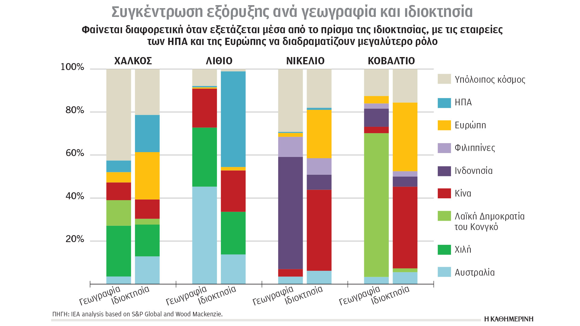 Η σημαντικότητα των κρίσιμων ορυκτών στην πορεία προς την πράσινη μετάβαση είναι αδιαμφισβήτητη. Το 2023 ο ρυθμός αύξησης της ζήτησης για λίθιο άγγιξε το +30%, για νικέλιο, κοβάλτιο και γραφίτη το +8-10%. Ενώ η Ινδονησία είναι η κορυφαία τοποθεσία εξόρυξης νικελίου, οι ινδονησιακές εταιρείες κατέχουν λιγότερο από το 10% της παραγωγής, με τις κινεζικές να είναι οι μεγαλύτεροι ιδιοκτήτες με 40% και τις ευρωπαϊκές με 20%. Για το κοβάλτιο, η πλειονότητα των ορυχείων βρίσκεται στη Λαϊκή Δημοκρατία του Κονγκό, με ευρωπαϊκές και κινεζικές εταιρείες να κατέχουν το 1/3. Ενώ για το λίθιο, το 50% ανήκει στις Ηνωμένες Πολιτείες.