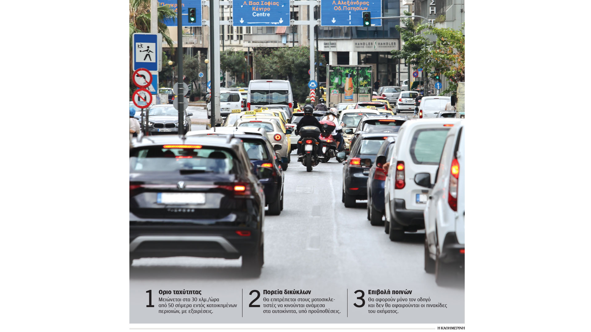 Από 1ης Νοεμβρίου 2025, το όριο ταχύτητας των οχημάτων εντός κατοικημένων περιοχών μειώνεται στα 30 χλμ./ώρα, εκτός εάν ορίζεται διαφορετικά με ειδική σήμανση. Ωστόσο, υπάρχουν και εξαιρέσεις. Το σημερινό όριο των 50 χλμ./ώρα θα συνεχίσει να διατηρείται σε μονόδρομους στους οποίους υπάρχουν τουλάχιστον δύο λωρίδες κυκλοφορίας. «Τι θεωρούμε διπλής λωρίδας; Υπάρχουν δρόμοι που θεωρητικά έχουν δύο λωρίδες αλλά στην πράξη γίνονται μία, γιατί δεξιά και αριστερά είναι παρκαρισμένα οχήματα», επισημαίνουν με απορία αρκετοί ειδικοί στην «Κ». Οπως τονίζουν, όταν ένα αυτοκίνητο κινείται με ταχύτητα 30 χλμ./ώρα, η πιθανότητα θανάσιμου ή σοβαρού τραυματισμού του ευάλωτου χρήστη (πεζός, οδηγός δικύκλου) είναι 20%, ενώ όταν κινείται με 50 χλμ./ώρα ξεπερνά το 80%. «Αν και δεν εισήχθη όπως θα θέλαμε, είναι θετική η μείωση του ορίου ταχύτητας γιατί πρέπει η κοινωνία να κατανοήσει πως ο πιο ευάλωτος χρήστης του οδικού δικτύου, ο πεζός, είμαστε όλοι μας», σημειώνει ο κ. Ζωγράφος. «Το όριο των 30 χλμ./ώρα επιτρέπει επίσης τη συνύπαρξη ποδηλάτου και αυτοκινήτου στον ίδιο χώρο. Ξαφνικά στο δίκτυο του ποδηλάτου προστίθενται πολλοί δρόμοι», αναφέρει στην «Κ» ο Θάνος Βλαστός, ομότιμος καθηγητής του ΕΜΠ, συγκοινωνιολόγος – πολεοδόμος. Ωστόσο, και οι δύο ομονοούν πως η συγκεκριμένη διάταξη μπαίνει δειλά και διστακτικά στον ΚΟΚ. «Εμείς προτείναμε οπουδήποτε συνυπάρχει μηχανοκίνητο όχημα, πεζός ή ευάλωτος χρήστης το όριο να είναι στα 30 χλμ./ώρα, ενώ οι δρόμοι που γειτνιάζουν με τα σχολεία να οριστούν στα 20 χλμ./ώρα, όλη την ημέρα, όλο τον χρόνο», αναφέρει ο κ. Ζωγράφος.