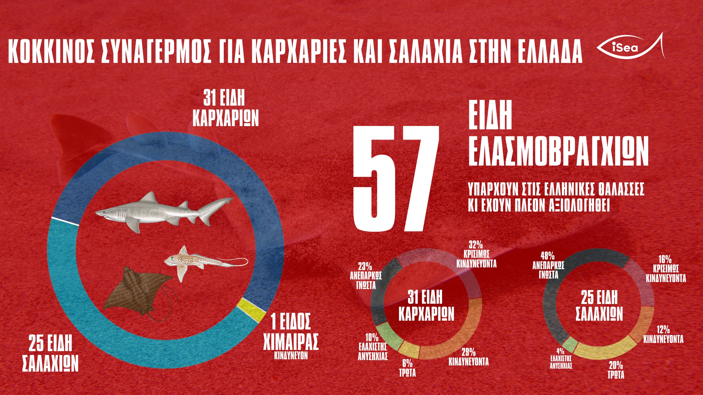 Αυτή τη στιγμή, στα ελληνικά ύδατα έχουν καταγραφεί 33 είδη καρχαριών, 29 είδη σαλαχιών και 1 είδος χίμαιρας, στοιχεία που καθιστούν τα εγχώρια θαλάσσια ύδατα σε σημαίνοντα βιότοπο της ευρύτερης περιοχής.