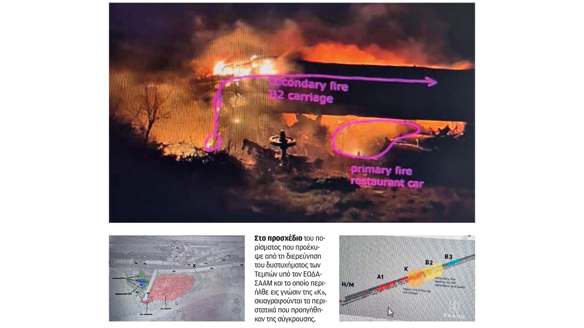 Στο προσχέδιο του πορίσματος που προέκυψε από τη διερεύνηση του σιδηροδρομικού δυστυχήματος των Τεμπών υπό τον Εθνικό Οργανισμό Διερεύνησης Αεροπορικών και Σιδηροδρομικών Ατυχημάτων και Ασφάλειας Μεταφορών (ΕΟΔΑΣΑΑΜ) και το οποίο περιήλθε εις γνώση της «Κ», σκιαγραφούνται τα περιστατικά που προηγήθηκαν της σύγκρουσης των δύο αμαξοστοιχιών, ο ίδιος ο μηχανισμός της σύγκρουσης, καθώς και τα αίτια των αναφλέξεων που ακολούθησαν.