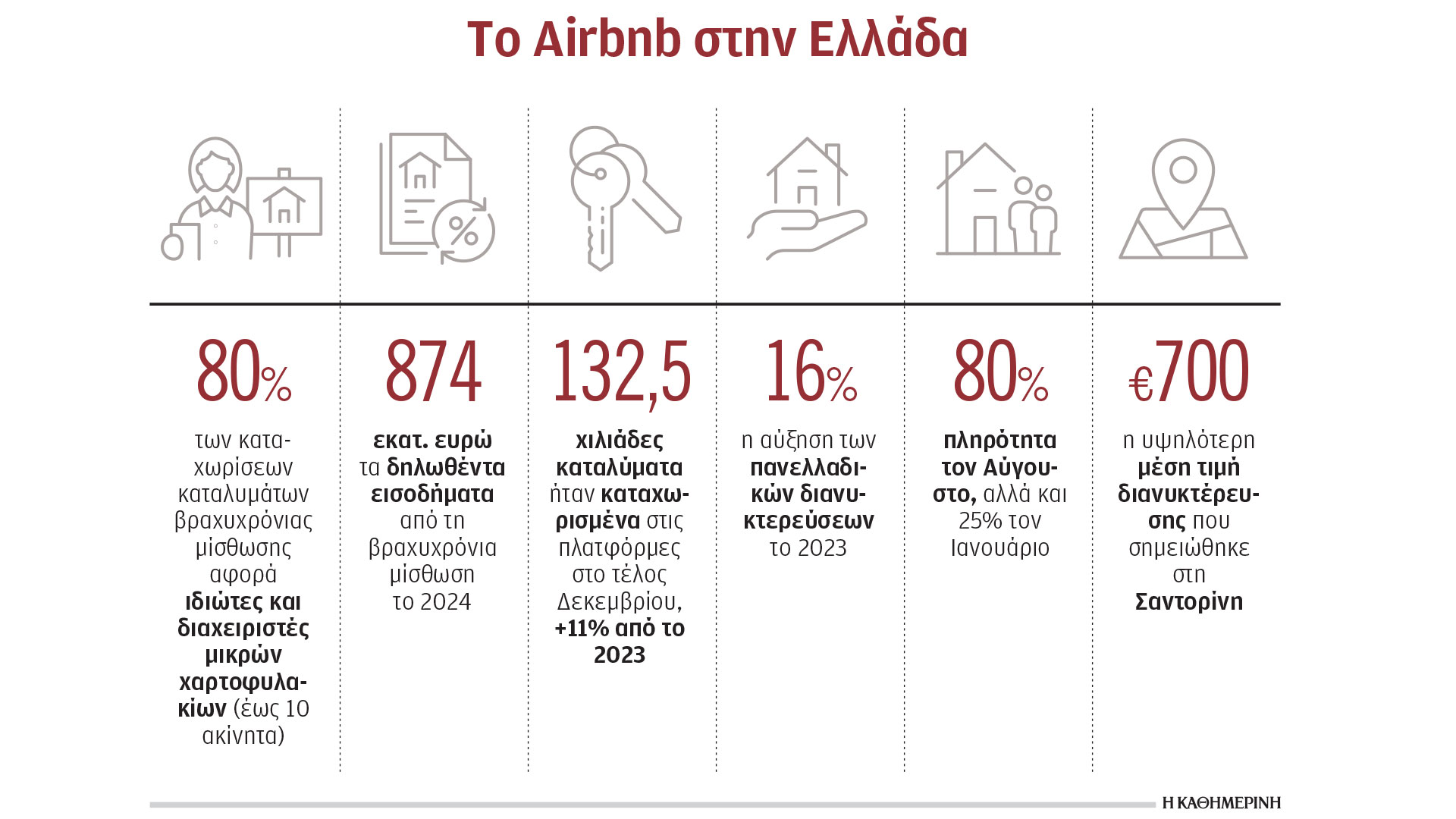 Σύμφωνα με τα στοιχεία της PriceLabs που παρουσιάστηκαν στο πρόσφατο συνέδριο ShortStay Conference, που διοργάνωσε ο Stama (Σύνδεσμος Εταιρειών Βραχυχρόνιας Μίσθωσης Ακινήτων), τον Δεκέμβριο του 2024, περίπου 132.500 καταλύματα ήταν καταχωρισμένα στις πλατφόρμες ανά την επικράτεια, αριθμός που ήταν κατά 11% αυξημένος σε σχέση με το 2023.