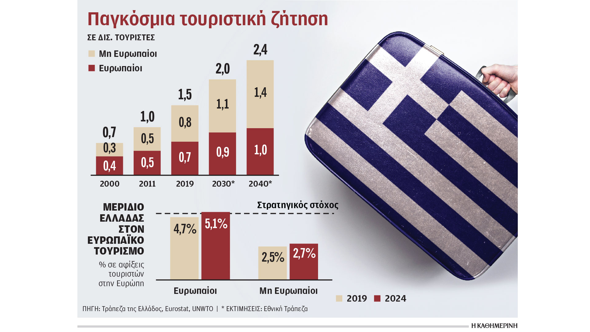 Πρόσθετες ταξιδιωτικές εισπράξεις 12 δισ. ευρώ σε ορίζοντα δεκαπενταετίας «βλέπει» η Εθνική Τράπεζα.