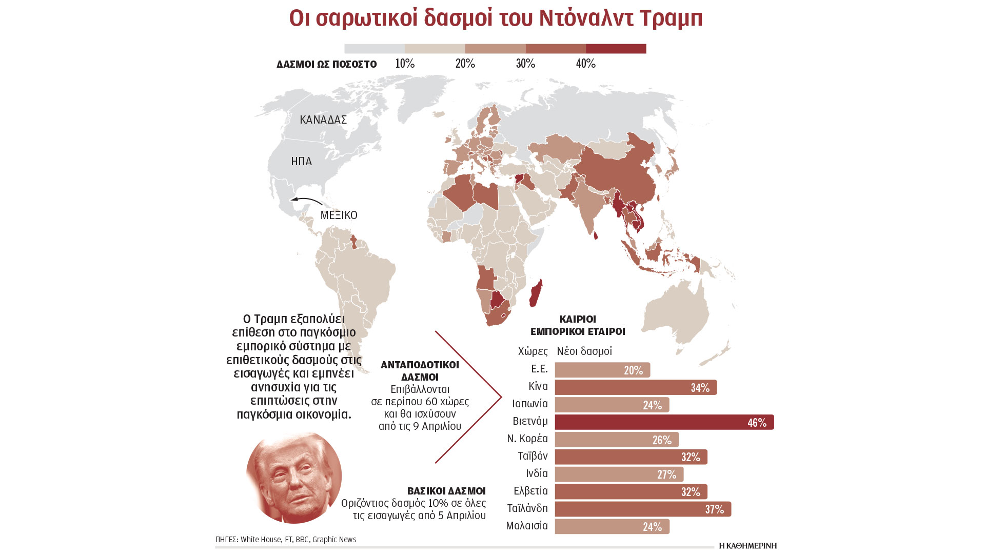 ΒΡΥΞΕΛΛΕΣ – ΑΝΤΑΠΟΚΡΙΣΗ. Πάνω από 80 δισ. ευρώ υπολογίζεται από την Ε.Ε. το ύψος των δασμών που εξήγγειλε την Τετάρτη το βράδυ ο Ντόναλντ Τραμπ.
