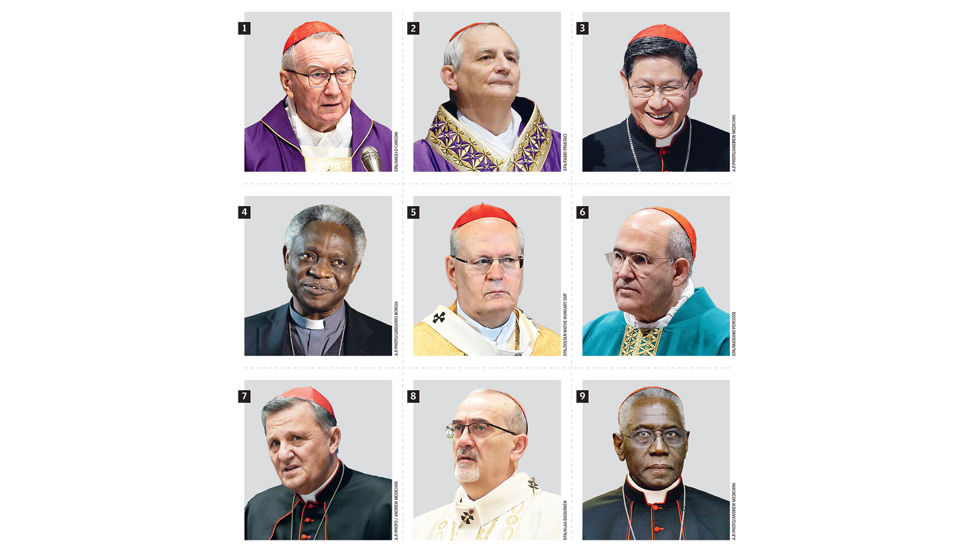 Ετσι, εκτός από τους εννέα επικρατέστερους δεν μπορούν να αποκλειστούν ονόματα σαν αυτό του Αμερικανού καρδιναλίου Ρέιμοντ Μπερκ, ντε φάκτο επικεφαλής της συντηρητικής «αντιπολίτευσης» στον Πάπα Φραγκίσκο, τον οποίο κατηγορούσε για «woke» ατζέντα, του Φριντολίν Αμπόνγκο Μπεσούνγκου, αρχιεπισκόπου της Κινσάσα, ηγέτη μιας τεράστιας τοπικής εκκλησίας, με περισσότερους από επτά εκατομμύρια πιστούς, και του αρχιεπισκόπου του Τόκιο, Ταρκίσιου Ισάο Κικούτσι, ο οποίος εξελέγη επικεφαλής του φιλανθρωπικού σκέλους της Εκκλησίας (Caritas) το 2023. Κάποιοι πάντως από τις ποικίλες λίστες που δημοσιεύονται, εμφανίζονται ξανά και ξανά και αυτοί είναι οι ακόλουθοι.