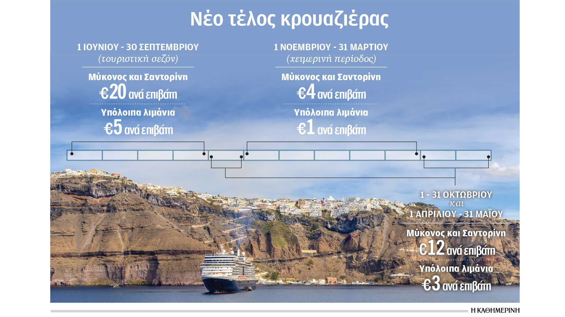 Σύμφωνα με τις σχετικές πληροφορίες η ισχύς του μέτρου, το οποίο αποσκοπεί αφενός στην αποσυμφόρηση κορεσμένων από την κρουαζιέρα προορισμών όπως η Σαντορίνη και η Μύκονος και αφετέρου στην αύξηση των πόρων από τη δραστηριότητα για να χρηματοδοτηθούν έργα υποδομών στα εμπλεκόμενα λιμάνια και στον τουρισμό, θα ξεκινήσει από την 1η Ιουλίου.