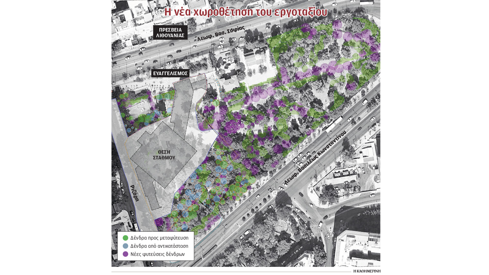 • Με τη νέα θέση του σταθμού, θα κοπούν 23 δέντρα και 33 θάμνοι λιγότερα από το πάρκο.
