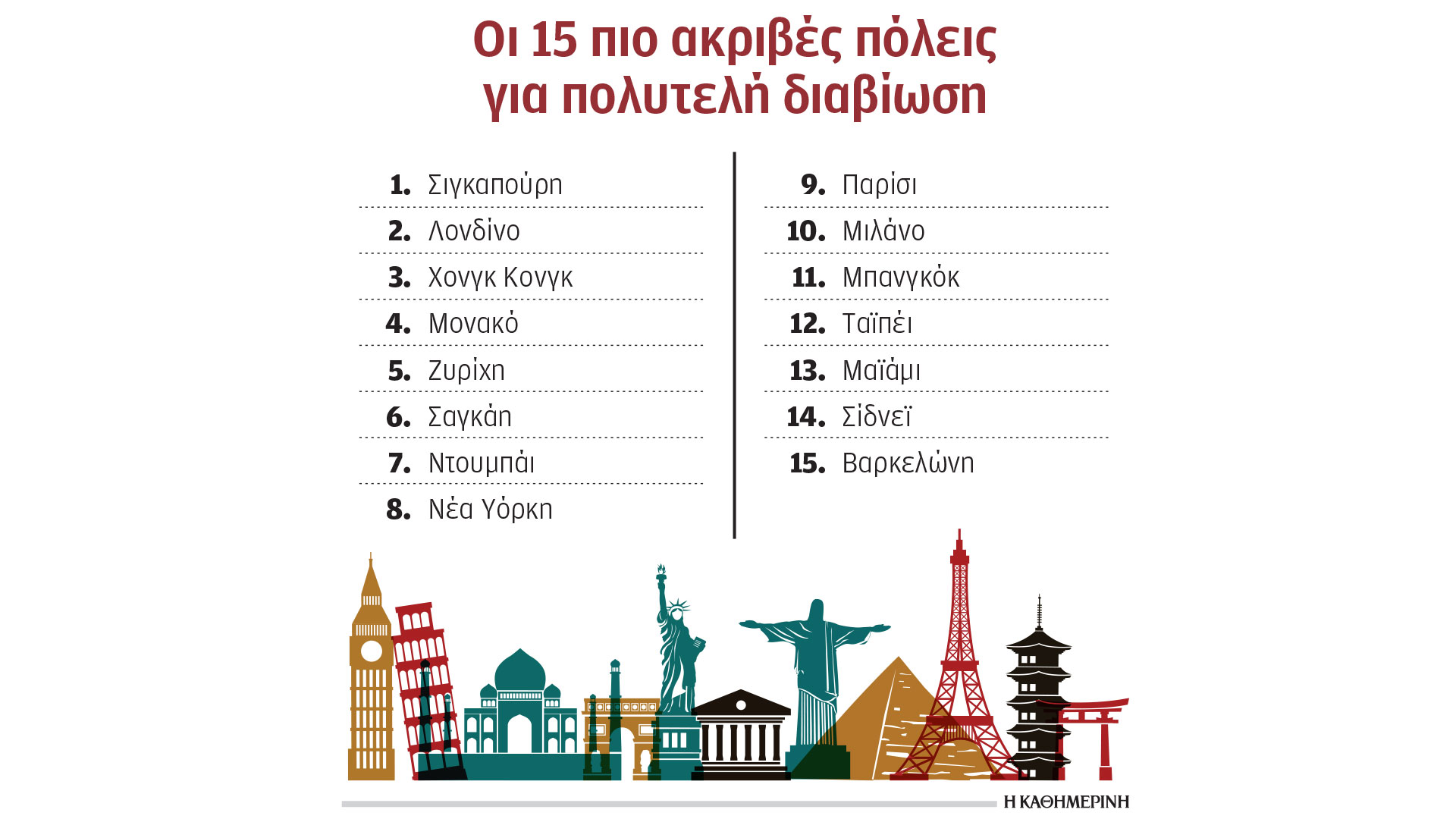 Η Νέα Υόρκη κατατάχθηκε όγδοη και είναι η μόνη πόλη της Αμερικής που περιλαμβάνεται στην πρώτη δεκάδα.