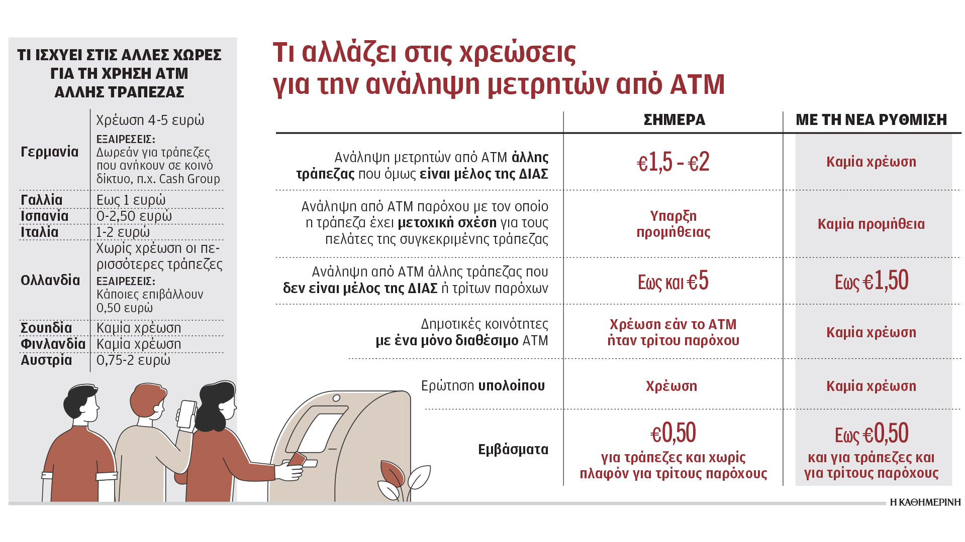 Δεν θα υπάρχει προμήθεια για αναλήψεις από ΑΤΜ παρόχου με τον οποίο η τράπεζα έχει μετοχική σύνδεση για τους πελάτες της συγκεκριμένης τράπεζας.