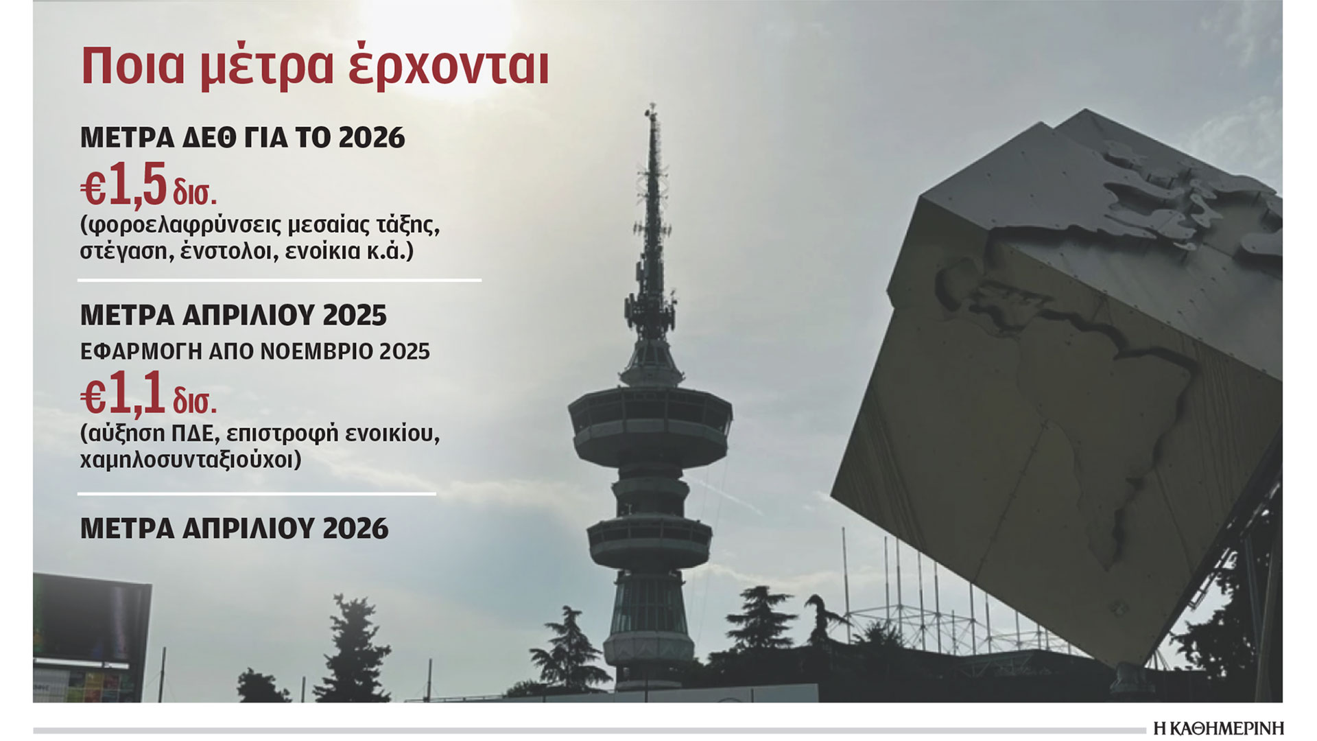 Μέτρα 1,5 δισ. ευρώ θα κατευθυνθούν σε τέσσερις κυρίως άξονες στις εξαγγελίες του πρωθυπουργού Κ. Μητσοτάκη στη ΔΕΘ, σε μια προσπάθεια απορρόφησης του πολιτικού κόστους από τις όποιες κυβερνητικές αστοχίες της προηγούμενης διετίας, το σκάνδαλο ΟΠΕΚΕΠΕ και τον χειρισμό του. Εν τω μεταξύ, τα χθεσινά στοιχεία εκτέλεσης του προϋπολογισμού για την περίοδο Ιανουαρίου – Ιουλίου επιβεβαιώνουν τη σταθερή υπεραπόδοση των φορολογικών εσόδων, ανοίγοντας παράθυρο για μια ακόμη δέσμη μέτρων για το 2026, η οποία θα εξαγγελθεί κατά τη διάρκεια της επόμενης χρονιάς, εφόσον τα οριστικά στοιχεία το επιτρέψουν. Κάτι ανάλογο δηλαδή με αυτό που έγινε φέτος, όταν επιβεβαιώθηκε η υπεραπόδοση του 2024 και εξαγγέλθηκαν τον Απρίλιο μέτρα 1,1 δισ. ευρώ – για το επίδομα των χαμηλοσυνταξιούχων 250 ευρώ και την επιστροφή ενός ενοικίου. Τα μέτρα αυτά θα εφαρμοστούν τον Νοέμβριο.