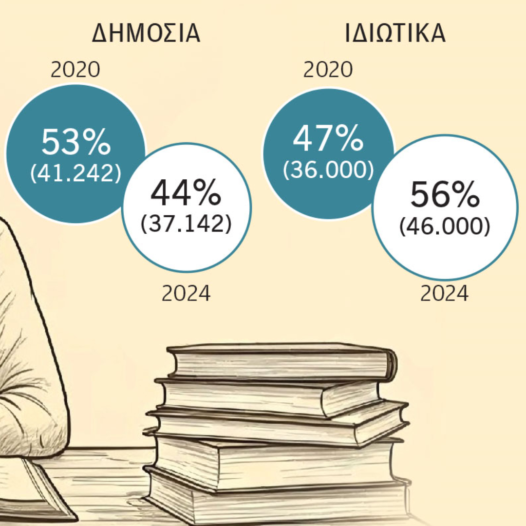 Αντιθέτως, στα ιδιωτικά ΙΕΚ το χειμερινό εξάμηνο του 2020 ήταν 36.000 σπουδαστές και το αντίστοιχο του 2024 46.000 (αύξηση 28%). Οπως προκύπτει, ενώ το 2020 η πλειονότητα των σπουδαστών σε ΙΕΚ ήταν σε δημόσια, το 2024 ήταν σε ιδιωτικά. Το ίδιο χρονικό διάστημα ο αριθμός των ιδιωτικών αυξήθηκε από 84 σε 90, ενώ των δημοσίων μειώθηκε από 221 σε 214. «Οι σπουδαστές στα δημόσια ΙΕΚ, ενώ ήταν πλειονότητα τα προηγούμενα χρόνια –το 53% του συνολικού σπουδαστικού δυναμικού το 2020– έγιναν μειονότητα, 44%, το 2024. Αντιστρόφως, οι σπουδαστές στα ιδιωτικά ΙΕΚ έγιναν πλειονότητα, από 47% το 2020 σε 56% το 2024», επισημαίνει ο κ. Κοτσιφάκης.
