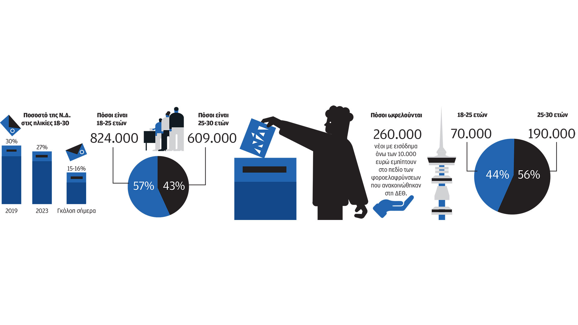 Η τελευταία έρευνα πριν αποφασιστούν τα μέτρα της ΔΕΘ δεν ήταν καθόλου αισιόδοξη: το ποσοστό της Ν.Δ. στις ηλικίες αυτές είχε πέσει κάτω από το 15%, δημιουργώντας μια «μαύρη τρύπα» για την κυβέρνηση. Εξ ου και η άποψη ότι αυτή η μάχη ίσως είναι χαμένη εκ προοιμίου.