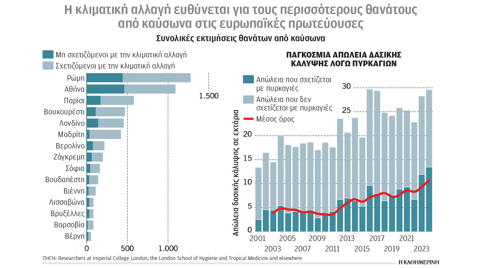 Παράλληλα, οι πυρκαγιές καταστρέφουν πλέον διπλάσια δασική κάλυψη σε σχέση με πριν από δύο δεκαετίες.