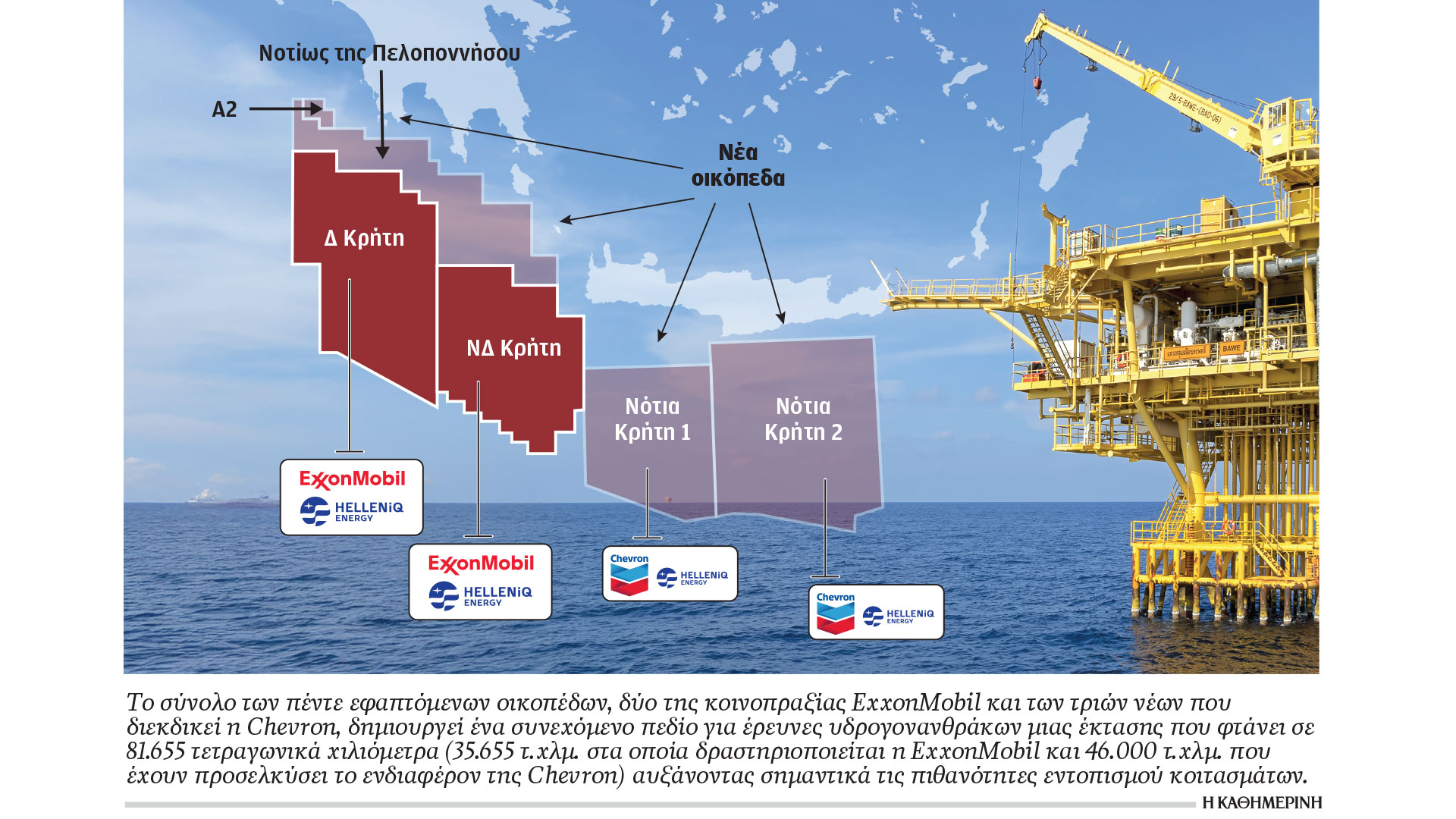 Η παρουσία της Chevron, του μεγαλύτερου ανταγωνιστή της διεθνώς, στην Κρήτη, και σε περιοχές που γειτνιάζουν με αυτές που έχουν παραχωρηθεί στην κοινοπραξία της ExxonMobil, σύμφωνα με κάποιες εκτιμήσεις κινητοποίησε την αμερικανική εταιρεία στο να πάρει την απόφαση για την πρώτη ερευνητική γεώτρηση.