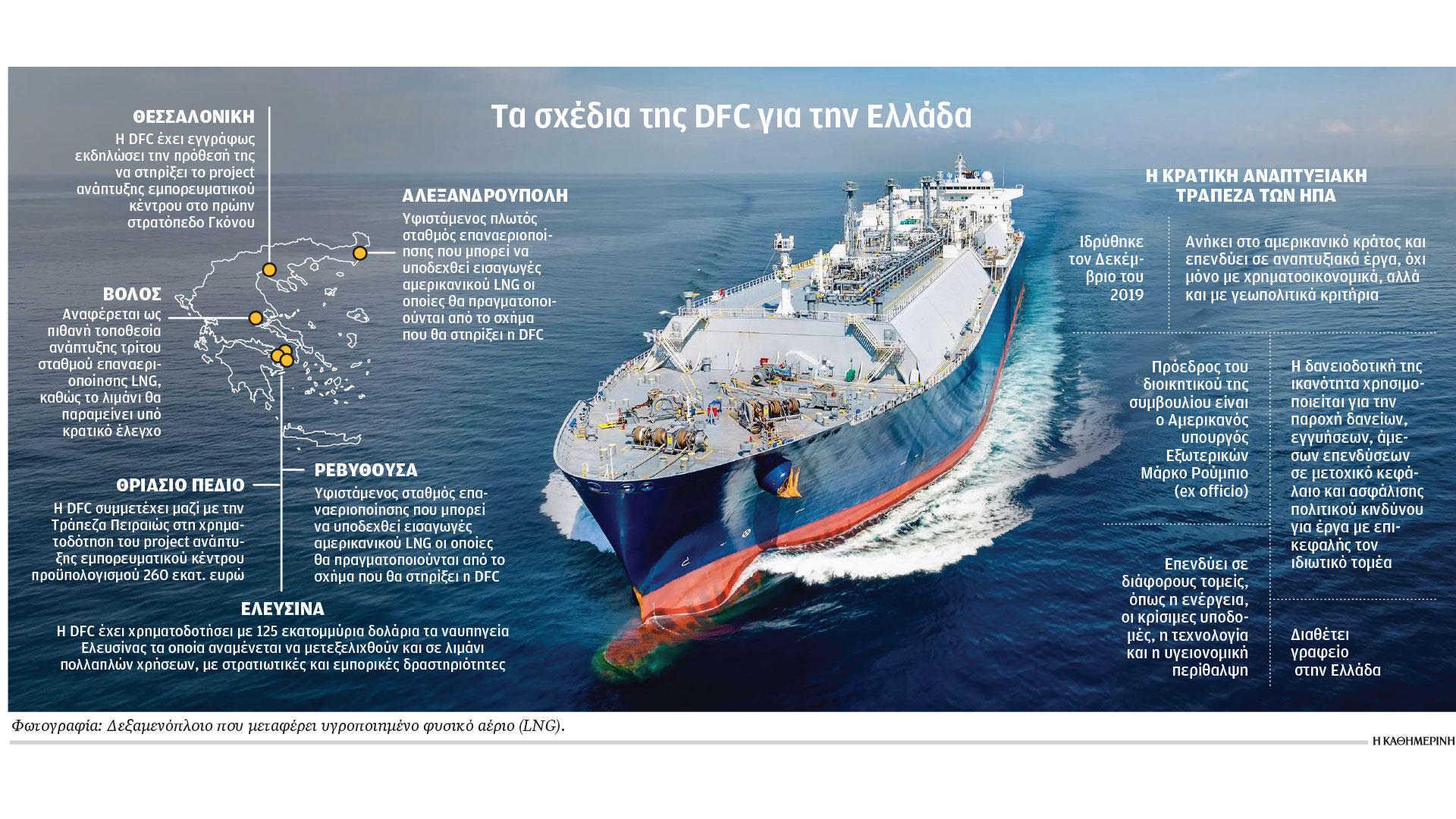 Υπάρχει ενδιαφέρον για τη συμμετοχή της DFC σε εταιρικό σχήμα για την εισαγωγή αμερικανικού LNG στη χώρα – Η σημασία της κίνησης για την απεξάρτηση της Ευρώπης από το ρωσικό φυσικό αέριο.