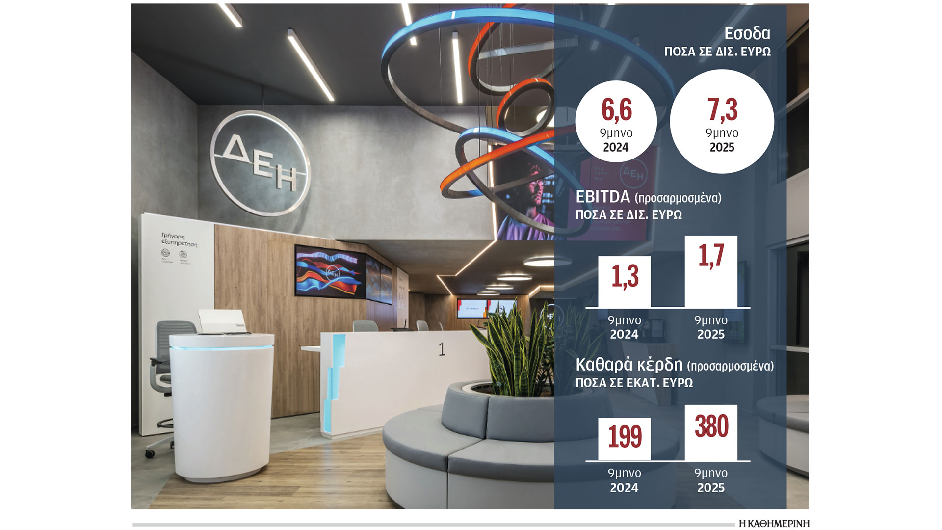 Τους στόχους της διοίκησης για λειτουργικά κέρδη (EBITDA) 2 δισ. ευρώ και καθαρά κέρδη άνω των 0,4 δισ. ευρώ στο τέλος του έτους επιβεβαιώνουν τα αποτελέσματα εννεαμήνου της ΔΕΗ που ανακοινώθηκαν χθες, μία ημέρα πριν από την παρουσίαση στο Λονδίνο του νέου τριετούς business plan (2026-2028).