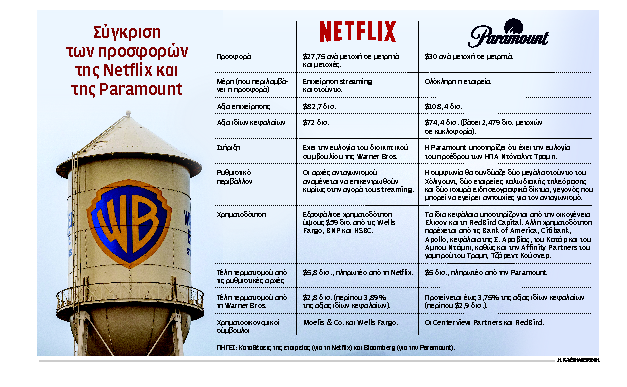 Η μάχη για τη WBD δεν αφορά μόνο τα περιουσιακά στοιχεία της, αλλά και την πρωτοκαθεδρία στη βιομηχανία της ψυχαγωγίας, με το παρασκήνιο να περιλαμβάνει έξι προσφορές της Paramount που έπεσαν στο κενό, μία σειρά από κρυφές συναντήσεις και μηνύματα, αλλά και την παρέμβαση του προέδρου των ΗΠΑ, Ντόναλντ Τραμπ, και του πολυμήχανου γαμπρού του, Τζάρεντ Κούσνερ.