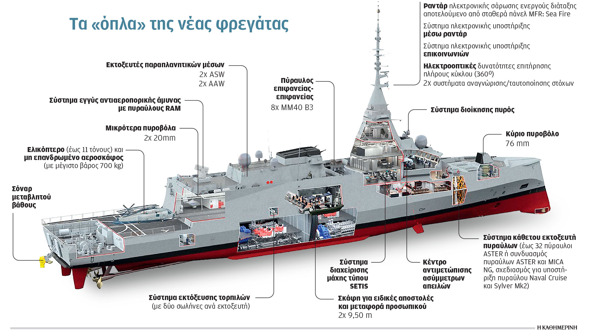 Για τα πρώτα χρόνια η Ελλάδα έχει εξασφαλισμένη και την εν συνεχεία υποστήριξη των τριών πρώτων φρεγατών τύπου FDI, και η εξέλιξη αυτού του προγράμματος στο βάθος των χρόνων θα είναι εξαιρετικά σημαντική ώστε να εξαχθούν και συμπεράσματα για τον τρόπο με τον οποίο μπορεί και η εγχώρια αμυντική βιομηχανία να συνεισφέρει. Αλλωστε, μετά τη χθεσινή τελετή ύψωσης σημαίας στον «Κίμωνα», ο υπουργός Εθνικής Αμυνας Νίκος Δένδιας συναντήθηκε με τη Γαλλίδα ομόλογό του Κατρίν Βοτρέν, με την οποία συζήτησαν και για την ανάγκη να επεκταθεί η βιομηχανική συνεργασία ανάμεσα στις δύο χώρες, με αφορμή, βεβαίως, αυτό το πολύ σημαντικό ναυπηγικό πρόγραμμα.