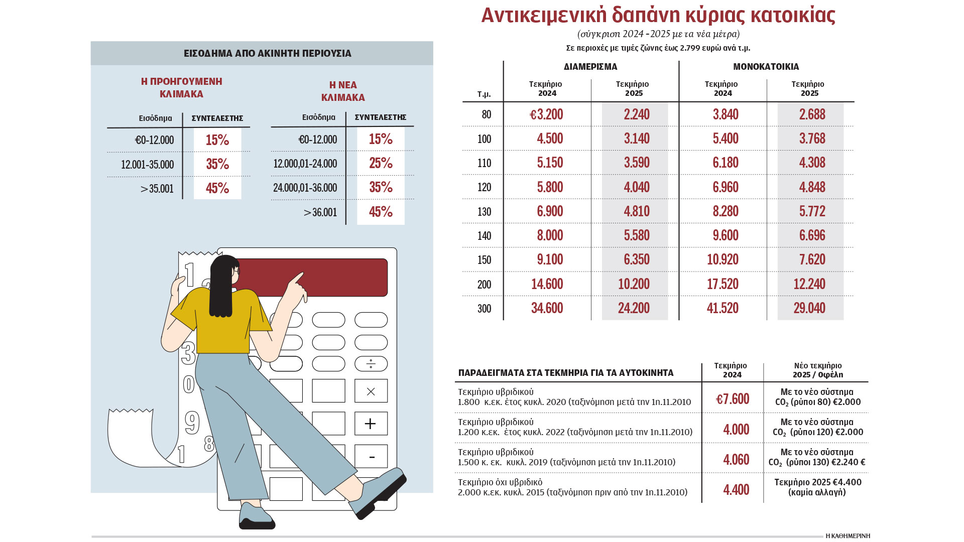 Στο πεδίο της ακίνητης περιουσίας εισάγεται ένας ενδιάμεσος συντελεστής 25% για ενοίκια από 12.000 έως 24.000 ευρώ.