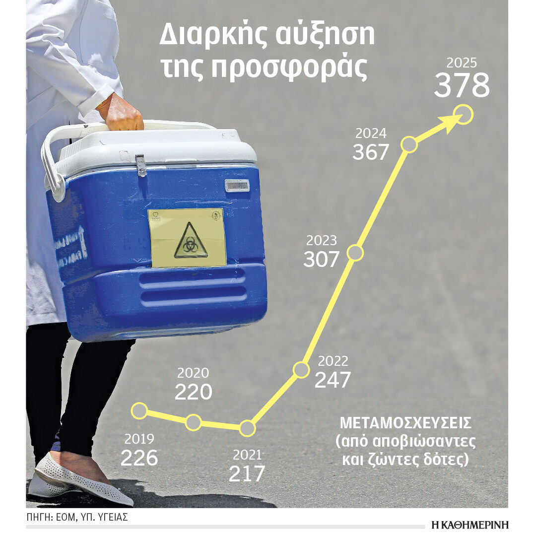 Από το υπουργείο Υγείας το 2025 χαρακτηρίζεται έτος-ορόσημο – Χάρη στην απλοποίηση της εγγραφής και στην καμπάνια ενημέρωσης προστέθηκαν 30.000 νέοι δότες.