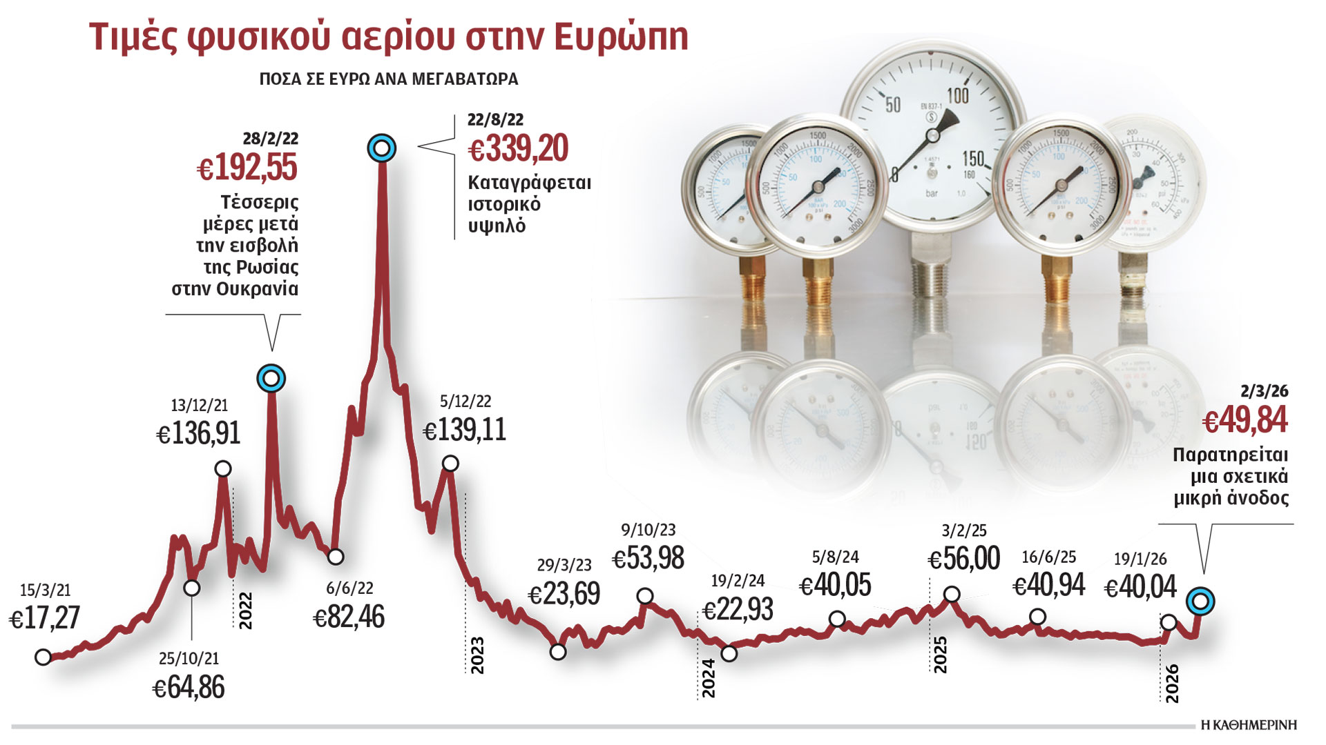 Εκείνος ο πόλεμος έθετε σε κίνδυνο τρία εκατ. βαρέλια ρωσικού αργού την ημέρα. Ο πόλεμος με το Ιράν διαταράσσει τώρα τη ροή 20 εκατ. βαρελιών πετρελαίου από ολόκληρη τη Μέση Ανατολή. Αφού παρουσίασαν αξιοσημείωτες αυξήσεις –6% τη Δευτέρα και 7% την Τρίτη– οι τιμές μέχρι στιγμής διαμορφώνονται κάτω από τα 80 δολάρια το βαρέλι και συγκεντρώνουν πιθανότητες να αποφύγουν επίπεδα που θα σηματοδοτήσουν μια ενεργειακή κρίση, η οποία θα ξυπνούσε το «φάντασμα» του 2022. Δύο φαίνεται να είναι οι βασικές διαφορές από την κρίση της Ουκρανίας.