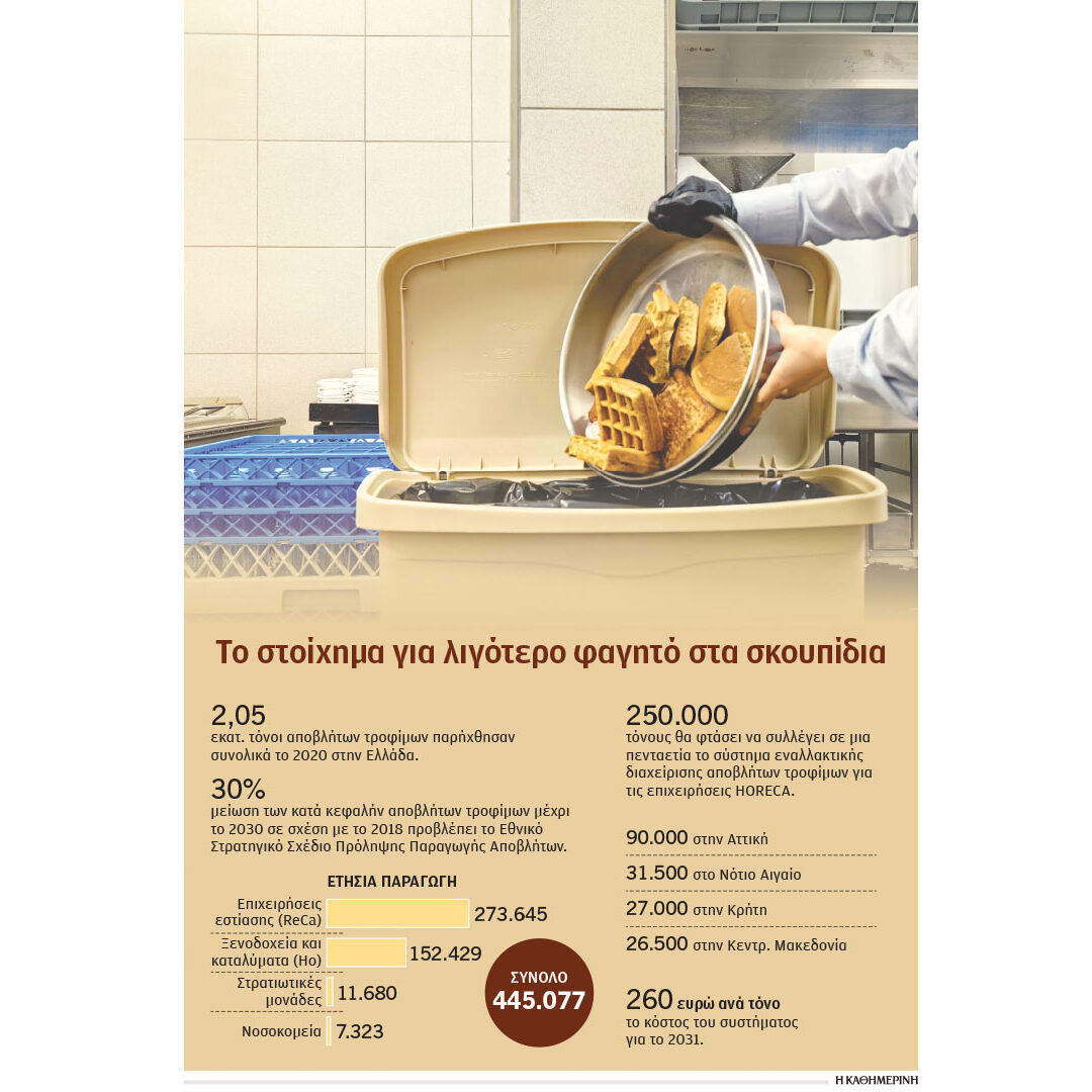 • Ειδικά για τη HORECA προτείνεται να τεθεί στόχος της μείωσης κατά 30% έως το 2029 και 60% έως το 2031 των αποβλήτων τροφίμων.