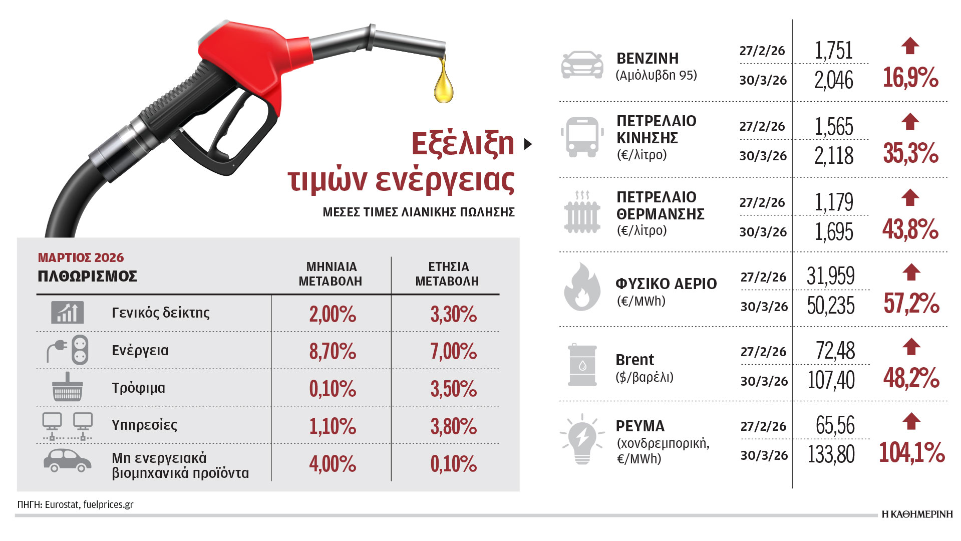 Μέτρα εδώ και τώρα για την αντιμετώπιση των επιπτώσεων από τη νέα ενεργειακή κρίση που πυροδότησαν οι πολεμικές συγκρούσεις στη Μέση Ανατολή αναμένουν τα κράτη-μέλη από την Κομισιόν, καθώς οι εξελίξεις έχουν «κάψει» ήδη τα καλά σενάρια και οι πληθωριστικές πιέσεις έχουν αρχίσει να διοχετεύονται σε όλο το φάσμα της οικονομίας.