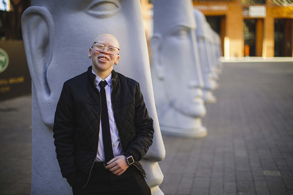 Τους θεωρούν φαντάσματα ή μάγους. Τους σκοτώνουν ή τους ακρωτηριάζουν ζωντανούς για να κρατήσουν τα άκρα τους ως ξόρκια απέναντι στην βασκανία και τα μάγια. Παιδιά ακόμη, η ζωή τους κινδυνεύει σοβαρά εξαιτίας των δοξασιών και της έλλειψης επιστημονικής γνώσης για τον αλμπινισμό στην Αφρική. Η γενετική κατάσταση, είναι κάτι που κληροδοτείται και από τους δύο γονείς και τα παιδιά με αλμπινισμό που γεννιούνται, έχουν πλήρη έλλειψη μελανίνης σε όλο το δέρμα, μαλλιά και μάτια, γεγονός που τα κάνει ευαίσθητα στο φως. Η παγκόσμια ημέρα λοιπόν είναι για αυτούς, και ο ακτιβιστής Itumeleng Nkosi, γνωστός για την δράση του στην Νότια Αφρική ποζάρει για αυτόν τον σκοπό στην πόλη του Γιοχάνεσμπουργκ.