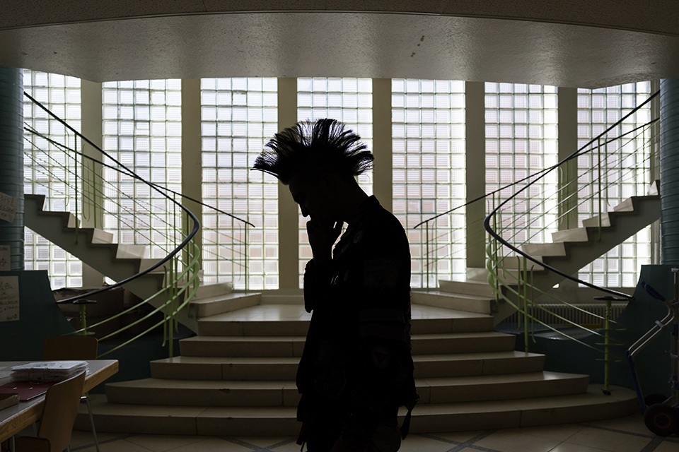 Ο Sergej από την Φινλανδία μιλάει στο κινητό του πριν συναντηθεί με τους άλλους. Αναρχικοί από όλοι την Ευρώπη συγκεντρώθηκαν στο St- Imier της Ελβετίας για ένα ανοιχτό workshop μέχρι τις 23 Ιουλίου.