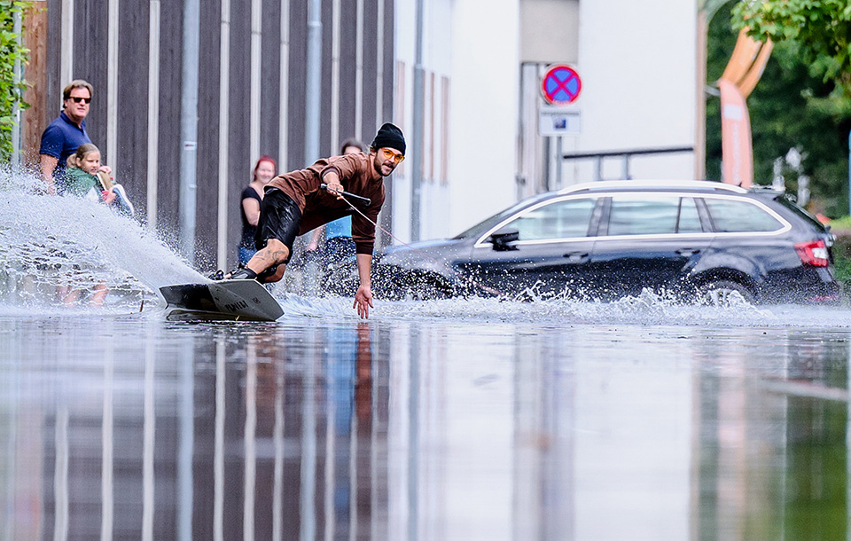 Η γειτονική Σλοβενία μετρά τις πληγές της σε ανθρώπινες ζωές και καταστροφές. Στην Αυστρία και την περιοχή της Styria είναι σε κατάσταση έκτακτης ανάγκης για την περίπτωση πλημμυρών αλλά και κατολισθήσεων. Αυτό βέβαια δεν σημαίνει ότι κάποιοι δεν μπόρεσαν να διασκεδάσουν ακόμη και μέσα στην πόλη Klagenfurt κάνοντας wakeboarder στους πλημμυρισμένους δρόμους μετά τις καταρρακτώδεις βροχές.