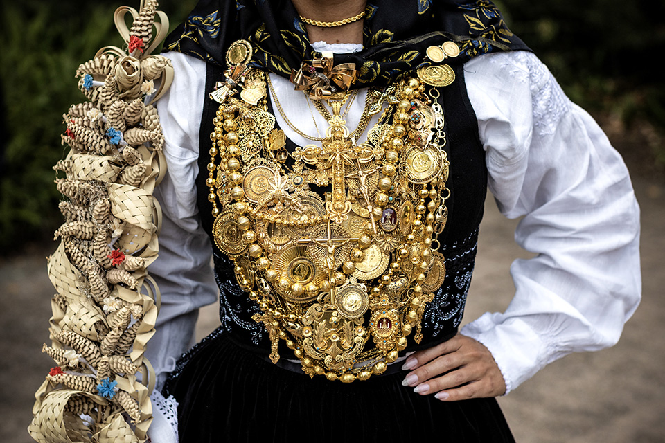 Το πρώτο Σαββατοκύριακο μετά το Δεκαπεντάυγουστο γίνεται η γιορτή και η πομπή των γυναικών. Η παράδοση κρατά από τον 18 αιώνα αλλά η πανέμορφη μπαρόκ εκκλησία στο Viana do Castelo της Πορτογαλίας χτίστηκε πάνω σε μια άλλη, προϋπάρχουσα. Εκεί στον Βορρά της χώρας και δίπλα στον Ατλαντικό που η ζωή των ανθρώπων εξαρτώνταν για αιώνες από την καλοσύνη της θάλασσας, υπάρχει μια θαυματουργή και αγαπημένη Παναγία, στην SANTUÁRIO DA SENHORA DA AGONÍA η μόνη που θα μπορούσε να βιώσει την αγωνία των ναυτικών αλλά και όσων μέναν πίσω. Στην πομπή τα νέα κορίτσια φορούν κόκκινες κεντημένες φορεσιές, οι μεγαλύτερες μαύρες, για τα πένθη της ζωής και όχι για να στολίζουν τα χρυσά που φορούσαν προς τιμήν της Παρθένου, κόποι και πικρό αντίτιμο μιας ολόκληρης ζωής.