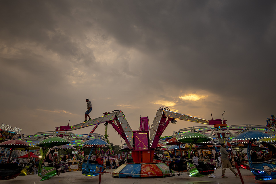 Ενας άνδρας ελέγχει την καλή λειτουργία του καρουσέλ στο Hogioaica της Ρουμανίας. Τα πανηγύρια του φθινοπώρου, πολλά στο παρελθόν, ελάχιστα σήμερα, είναι ο μόνος τρόπος για κάποιο εισόδημα για τους διοργανωτές των λούνα παρκ αλλά το σημαντικότερο, η μοναδική διασκέδαση για τους φτωχούς κατοίκους της περιοχής.