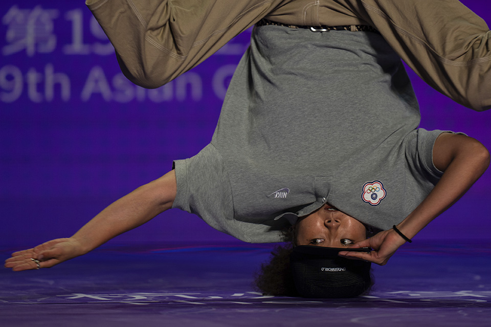 Στο πλαίσιο των Ασιατικών Αγώνων που διεξάγονται στο Hangzhou της Κίνας έγιναν και οι προκριματικοί στο breakdancing. Στην φωτογραφία η Yang Jia Li από την Ταϊβάν στην διάρκεια της προσπάθειάς της για μια θέση στους τελικούς.