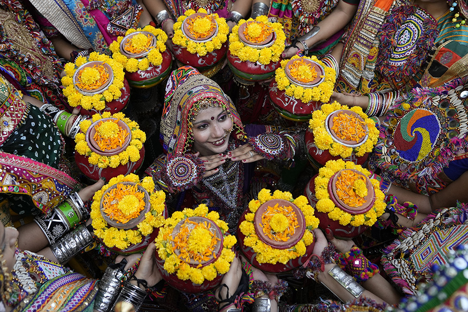 Με τις παραδοσιακές φορεσιές τους χορεύουν τα κορίτσι στην επαρχία Gujarat της Ινδίας για την έναρξη της γιορτής Navrati. Εννιά μέρες γιορτάζουν προς τιμήν της θεότηταςDurga, που μεταξύ άλλων είναι και προστάτιδα τόσο της μητρότητας όσο και του πολέμου. Στο τέλος του φεστιβάλ τα αγάλματα των θεών εξαγνίζονται στο νερό, σε λίμνες και ποτάμια και τα αγάλματα των δαιμόνων καίγονται στην πυρά.