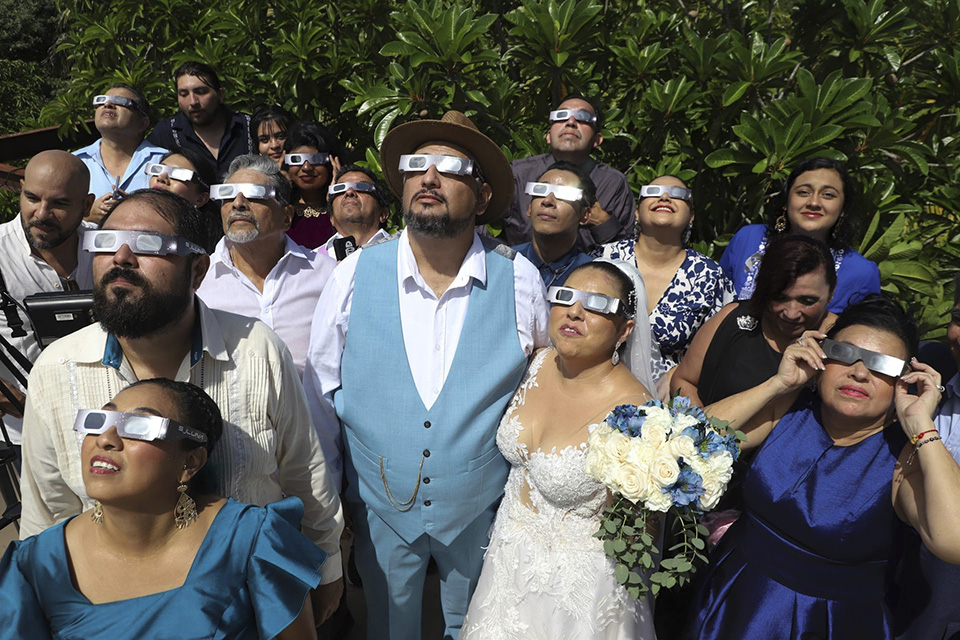 Δεν βιάστηκε καθόλου το ζευγάρι των νεονύμφων. Ο Isaac Medina, και η Jazmin Gonzalez μαζί με τους καλεσμένους τους έδωσαν προτεραιότητα στα φαινόμενα του ουρανού και απόλαυσαν την έκλειψη με το δαχτυλίδι της φωτιάς στην Μερίντα του Μεξικού.