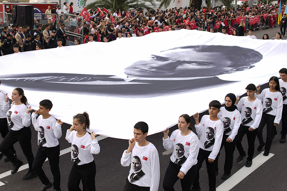 Μαθητές κρατούν πανό με την μορφή του Μουσταφά Κεμάλ Ατατούρκ με αφορμή τα 100 χρόνια του σύγχρονου κοσμικού κράτους της Τουρκίας. Και όμως οι εορτασμοί σκιάζονται από ένα πρόβλημα που έζησε έντονα και η δική μας χώρα. Οι στατιστικές δείχνουν ότι όλο και περισσότεροι νεαροί και μορφωμένοι Τούρκοι φεύγουν από την χώρα, ψάχνοντας καλύτερες συνθήκες διαβίωσης στην Ευρώπη.