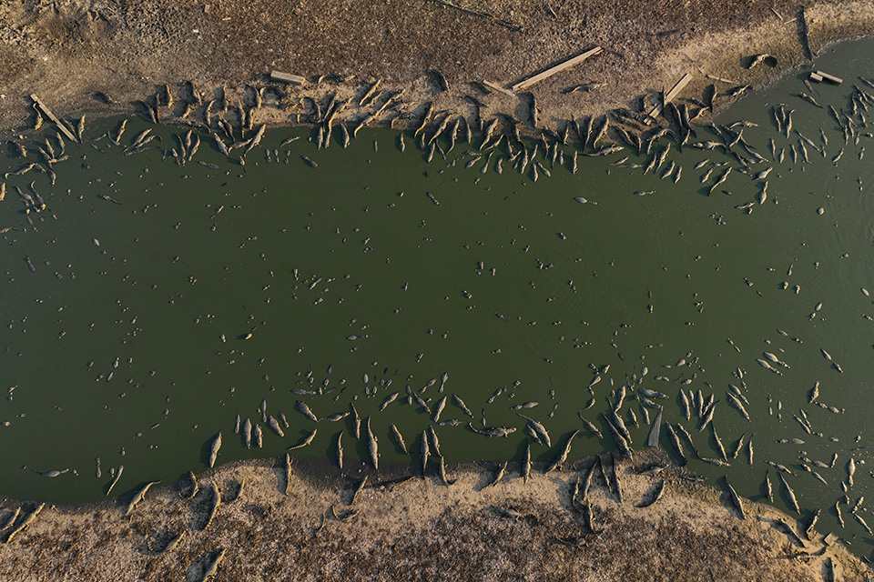 Αλιγάτορες καϊμάν συνωστίζονται σε ό,τι απέμεινε από τον ποταμό Bento Gomes στους υδροβιότοπους Poconeτης επαρχίας Mato Grosso της Βραζιλίας, απόρροια των υψηλών θερμοκρασιών αλλά και των πυρκαγιών σε μια από τις μεγαλύτερες επαρχίες της χώρας και τον μεγαλύτερο τροπικό υγροβιότοπο του κόσμου.