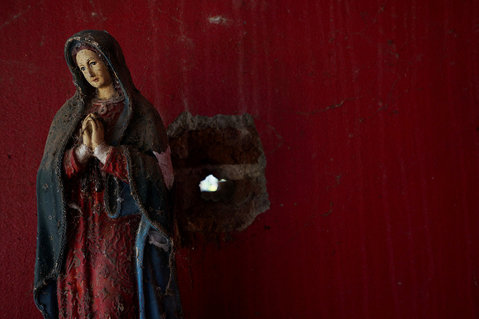Οι ουρές των μεταναστών είναι καθημερινό φαινόμενο στον φράχτη που χωρίζει τις ΗΠΑ από το Μεξικό. Μια σημαντική παράμετρο της μετανάστευσης έρχεται να αναδειχθεί από το REUTERS και έχει να κάνει από την άνοδο των καρτέλ ναρκωτικών στην χώρα αναγκάζοντας ολόκληρες οικογένειες να «δραπετεύουν» από τις κοινότητές τους αναζητώντας ένα ασφαλές πλαίσιο να ζήσουν. Στην φωτογραφία ένα από τα άδεια σπίτια του El Limoncillo στην επαρχία του Michoacan που οι κάτοικοί του έφυγαν αφήνοντας πίσω το άγαλμα της Παναγίας της Γουαδελούπης με μια τρύπα σφαίρας στον τοίχο πίσω της.
