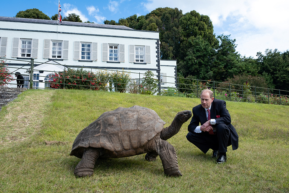 Την ώρα που οι πάντες εικάζουν για την υγεία της πριγκίπισσας Κάθριν και του βασιλιά Καρόλου, οι υπόλοιποι της βασιλικής οικογένειας συνεχίζουν τις υποχρεώσεις τους. Σε μία από αυτές ο πρίγκιπας Εντουαρτ ποζάρει με τον Τζόναθαν στην διάρκεια της επίσκεψής του στο νησί της Αγίας Ελένης, την γηραιότερη χελώνα του κόσμου που μετρά 191 χρόνια.