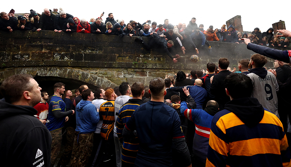 Η παράδοση ξεκινά από τον 12ο αιώνα στην περιοχή και συνεχίζεται μέχρι και σήμερα. Το χωριό χωρίζεται στα δύο (πάνω και κάτω Ashbourne) και στην έναρξη της νηστείας πριν το Πάσχα η δερμάτινη γεμισμένη με φελλό μπάλα φτιαγμένη στο χέρι, πετιέται στο πλήθος. Ναι, πλήθος καθώς στον Royal Shrovetide ποδοσφαιρικό αγώνα, μπορεί να υπάρχουν δύο ομάδες, μπορούν όμως να συμμετέχουν δεκάδες σε κάθε ομάδα. Υπάρχουν και άλλες διαφορές, όπως ότι το γήπεδο είναι ολόκληρο το χωριό που για εκείνες τις ημέρες αδειάζει από αυτοκίνητα καθώς ο αγώνας ξεκινά το μεσημέρι και τελειώνει αργά το βράδυ.Ή ότι τα τέρματα είναι καθορισμένα σημεία από πριν, η μπάλα δεν είναι απαραίτητο να την κλωτσά κανείς αλλά μπορεί να την μεταφέρει αγκαλιά και όταν κάποιος σκοράρει η μπάλα του ανήκει για να γράψει πάνω το όνομά του και να την κρατήσει ενθύμιο καθώς μια νέα μπάλα πετιέται στο πλήθος που με φοβερό πάθος ξεχύνεται και πάλι στον αγώνα.
